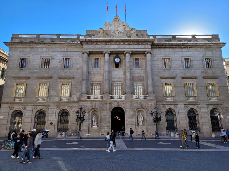 I also walked to this square a few minutes from the cathedral, where two impressive buildings stand. One of these is the city hall, the other is the Palau de la Generalitat, the seat of the Catalan government. It’s an atmospheric square, let’s stop by during our old town walk!