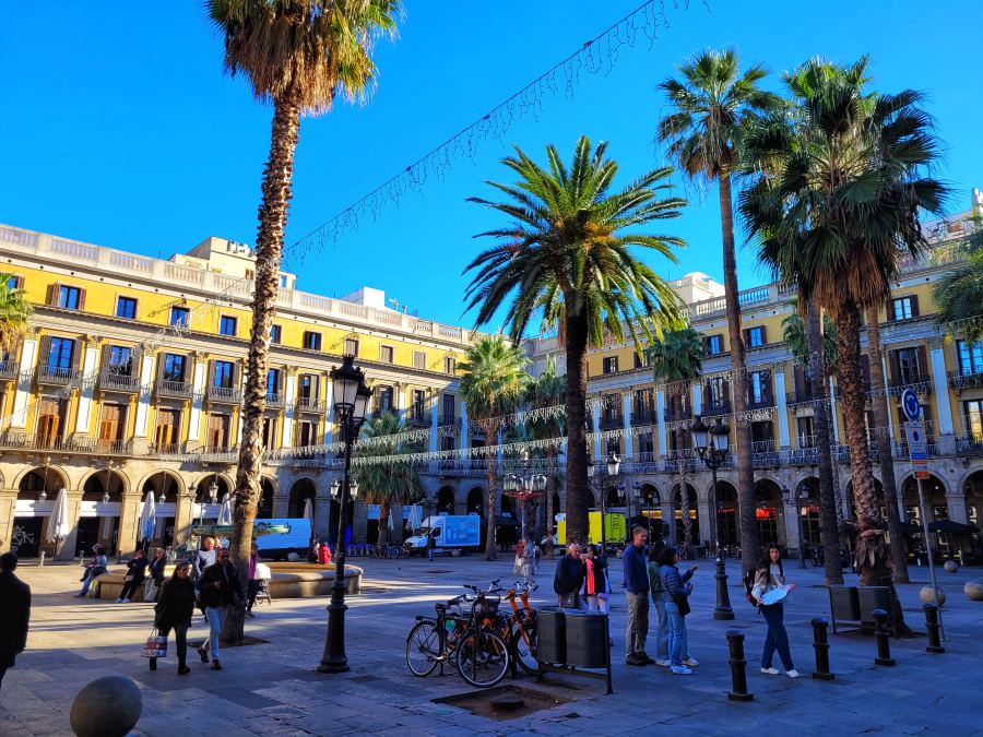 It’s a very atmospheric, enclosed square with tall palm trees, restaurants, and cafes. This is more of a sight to see than La Rambla.