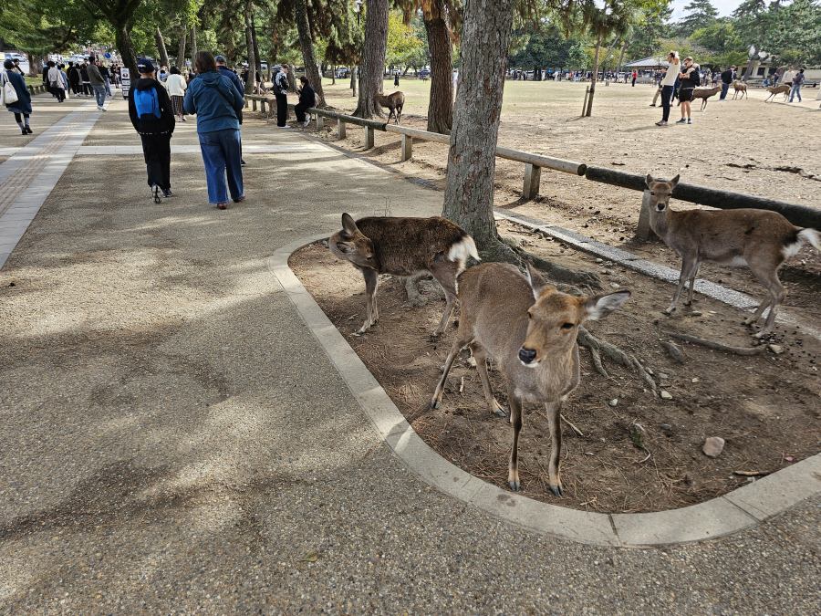 First, I went to one of the most famous attractions, Todai-ji Temple. This route is where you can encounter the most deer. Lots of them were wandering around among the people, really as if they were domestic animals. It’s funny to see them bowing, that’s how they wait for food. 🙂