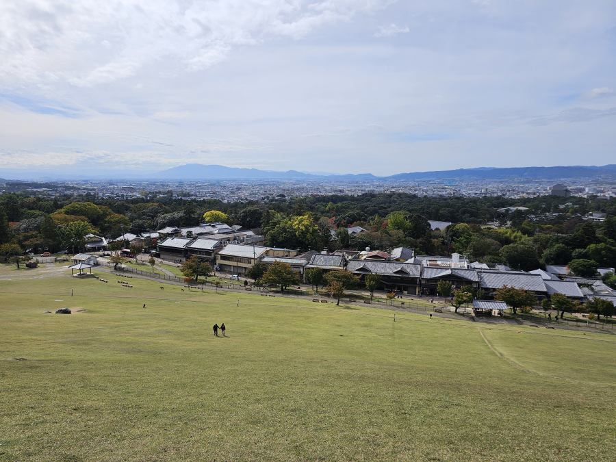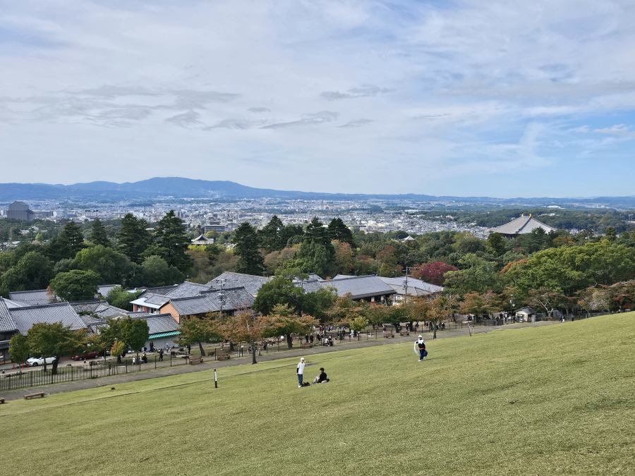 I continued my walk southward and reached Wakakusayama Hill. This is a large, steep hillside, admission is 150 yen. I didn’t go all the way to the top, but climbed up to the highest point of the steep section where there’s a fence. The view is wonderful, I definitely recommend the approximately 5-6 minute climb upward.